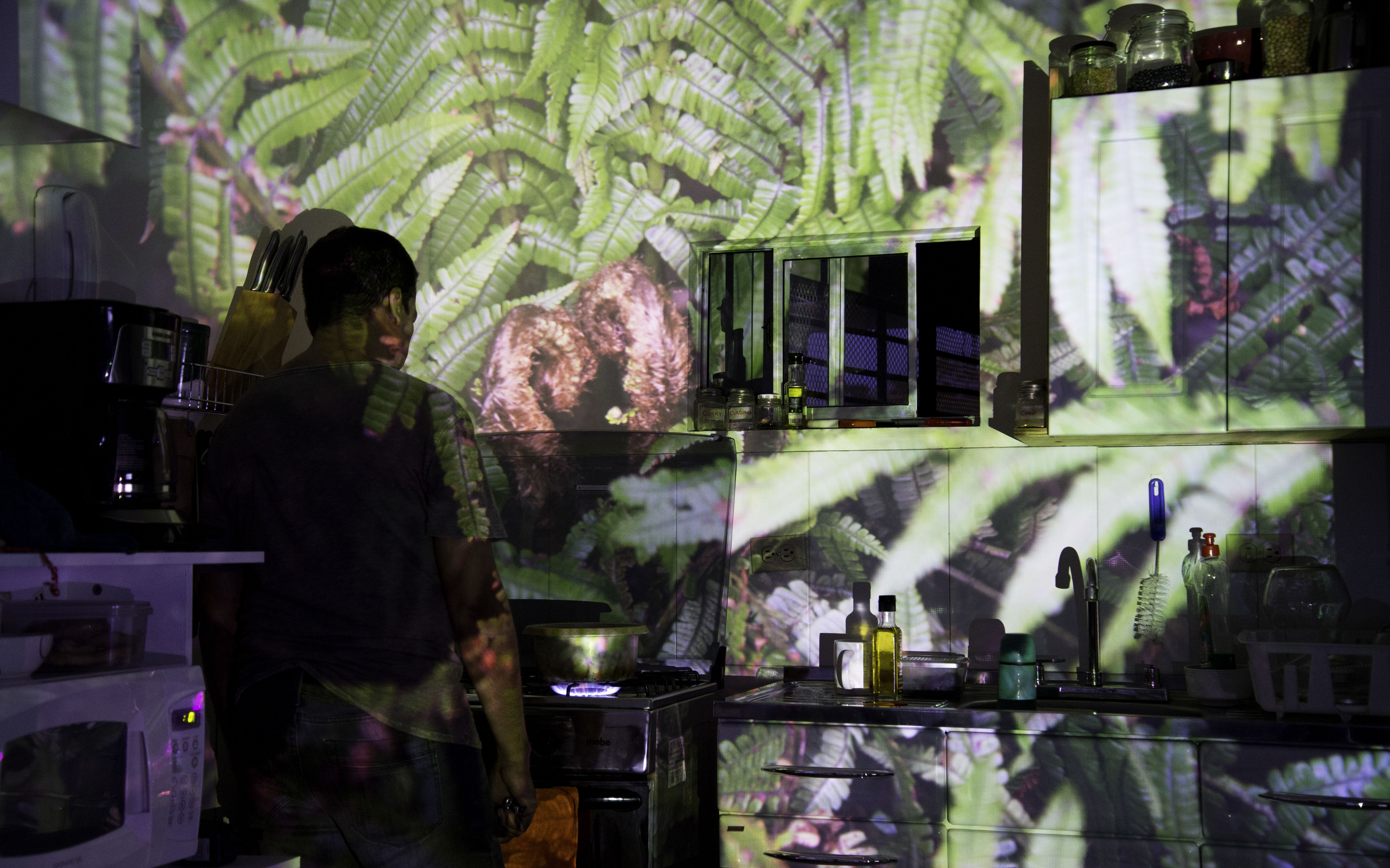 Antropófito es precisamente una serie de transformaciones del cuerpo y del entorno por medio de las plantas o la naturaleza, es un acercamiento a mis propios intereses y preocupaciones de lo que puede pasar si de un momento a otro toda la naturaleza se viera en la necesidad de actuar y se unieran con un solo fin “apoderarse del planeta”, entrando por cada ciudad, espacio y cuerpo para poseerlo y terminar con el uso discriminado de los recursos.